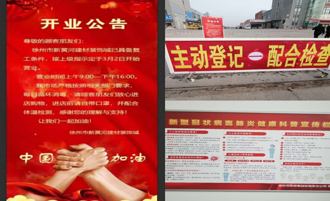為全面貫徹落實市委、泉山區(qū)《關于切實做好服務業(yè)企業(yè)復工復產(chǎn)工作的通知》文件精神,新黃河裝飾城嚴格落實疫情防控措施,并通過屬地政府審核驗收,于3月2日全面復工復產(chǎn)。